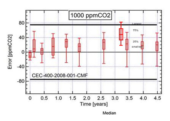 在使用室外 CO2 传感器以控制室内和室外 CO2 浓度差值为 600 ppm 时,这个单一的传感器就成为整个楼宇中最重要的传感器之一。这个传感器的漂移会影响楼宇的所有独立区域内系统控制。