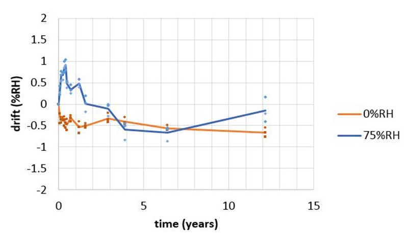 图1:维萨拉 HUMICAP® 传感器的室外稳定性测试数据